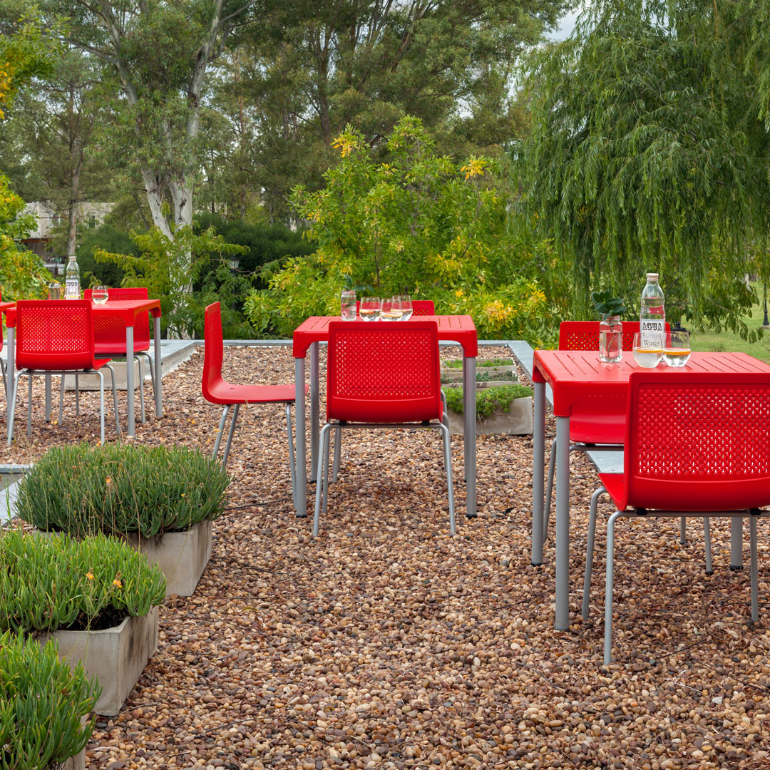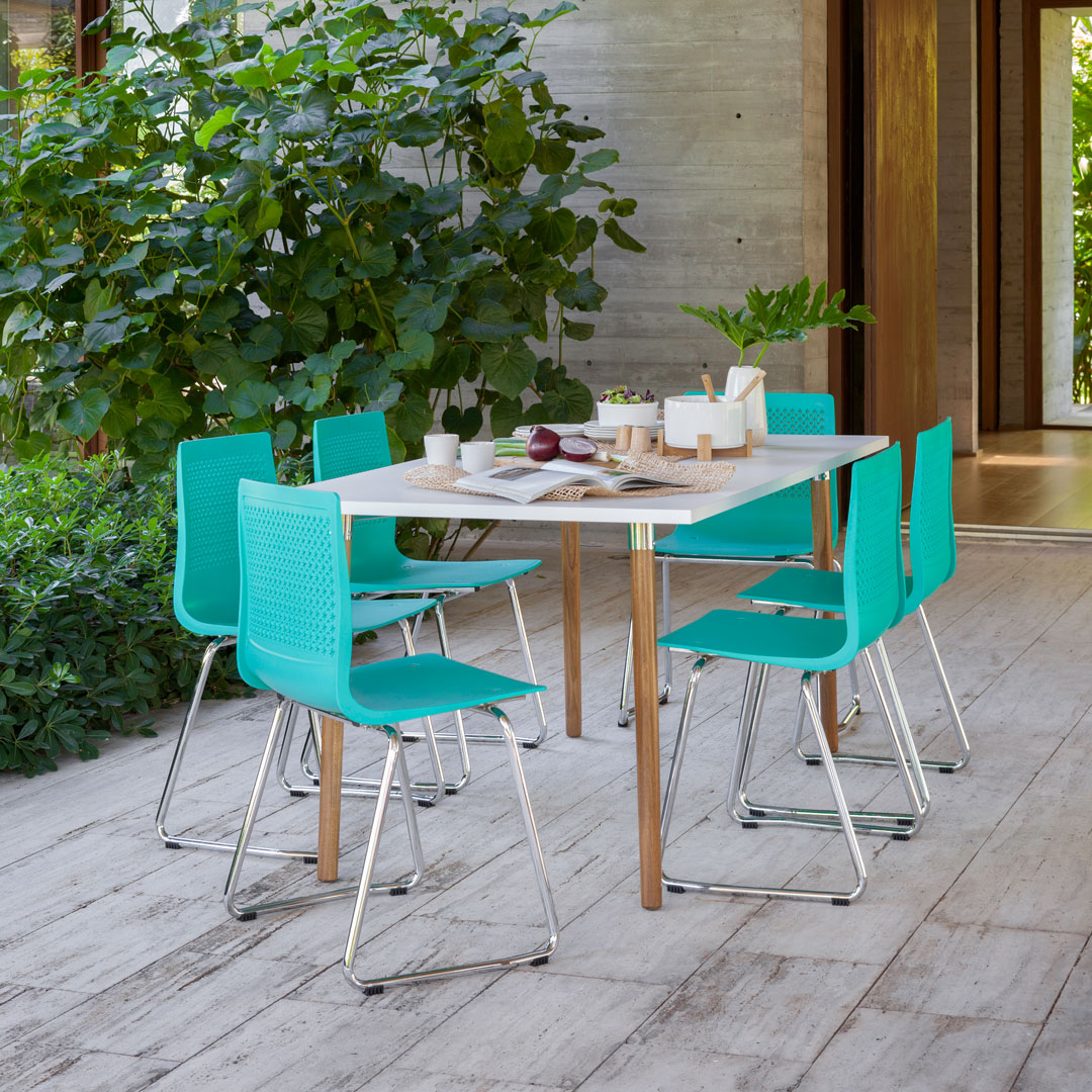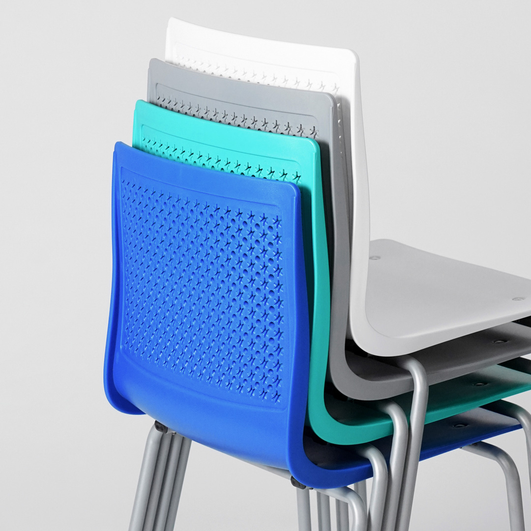 Funcional y cómoda, con respaldo único, asiento amplio y colores vivos. Resistente, apilable y perfecta para uso diario.