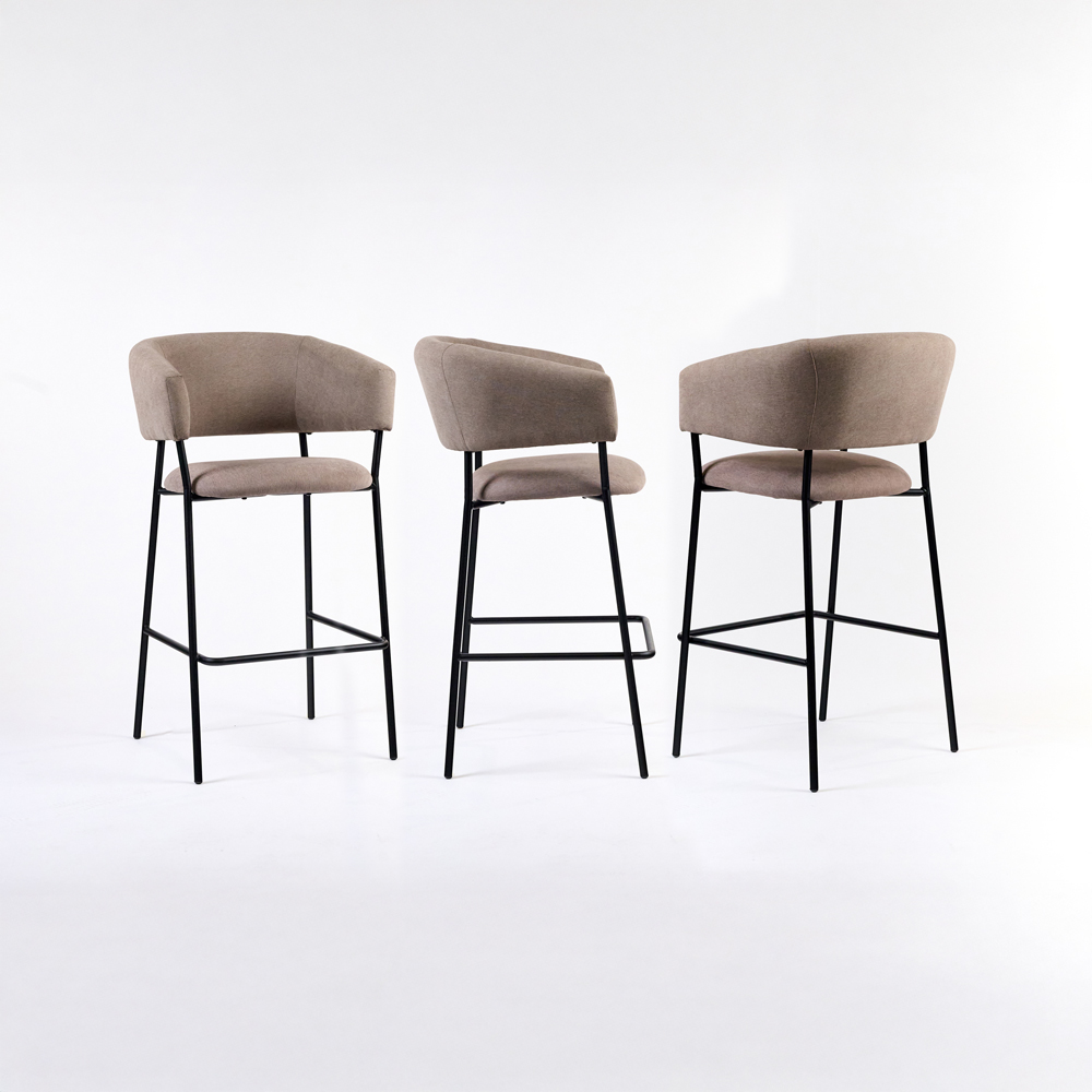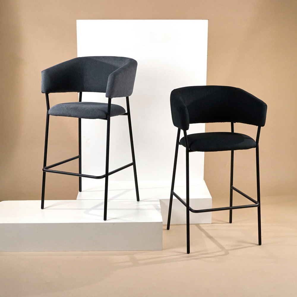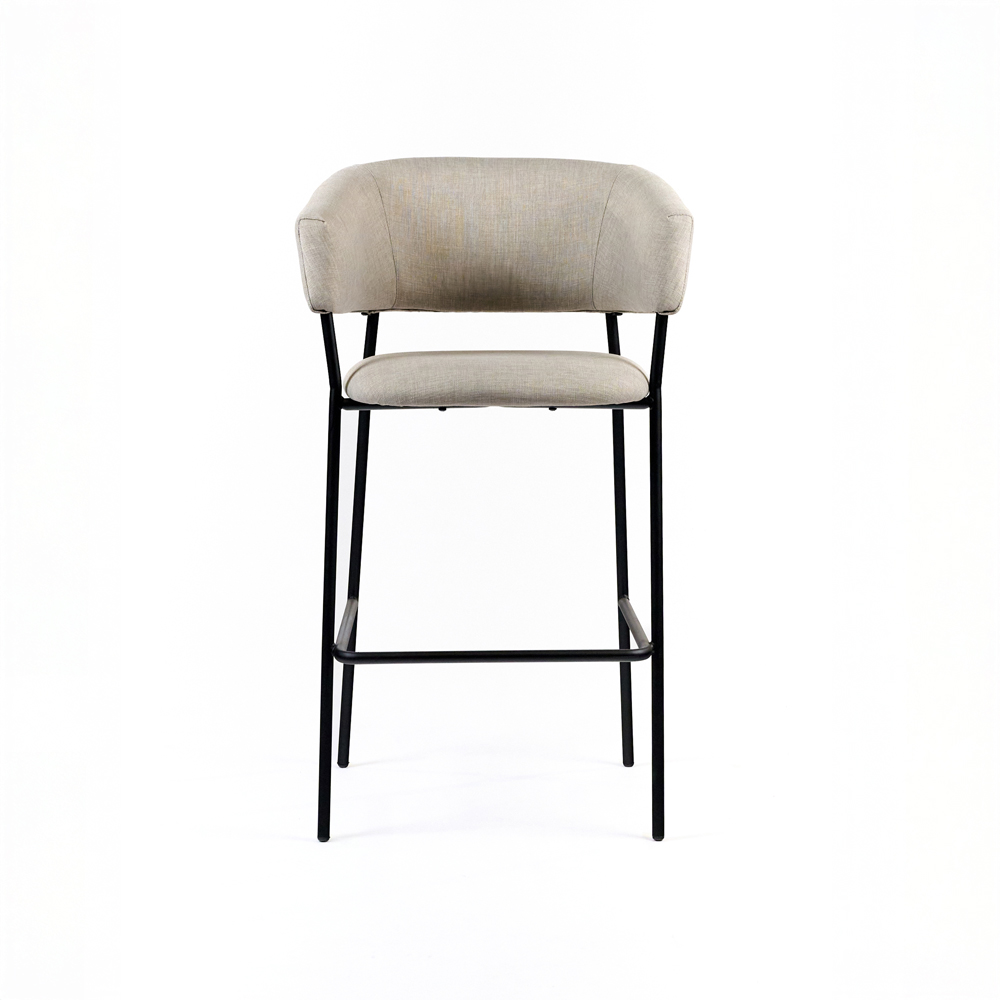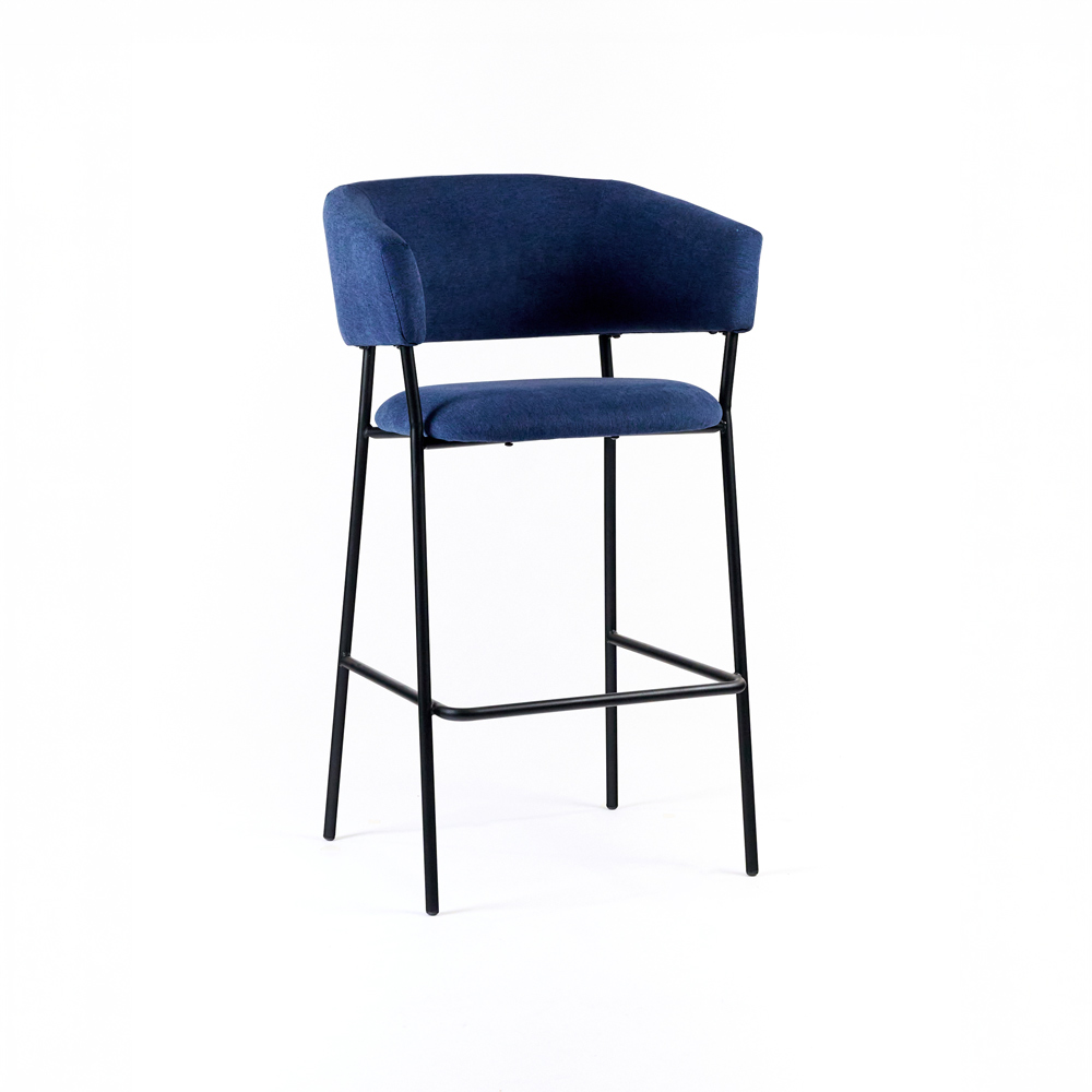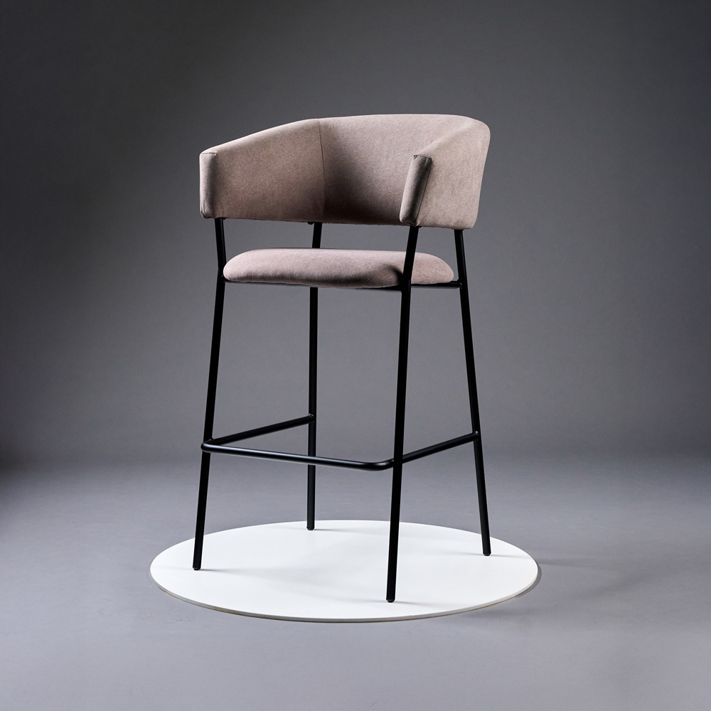 Con su asiento amplio tapizado y su base de caño combina solidez y confort. Perfecto para barras, islas o espacios donde se busca funcionalidad sin resignar estilo.